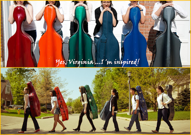 When I saw days ago the photos below at Virginia’s blog I thought they were amazing! It’s her son David and his friends with their cello cases. Awesome photos! So Virginia is having a challenge were you have to make a card inspired by these photos.