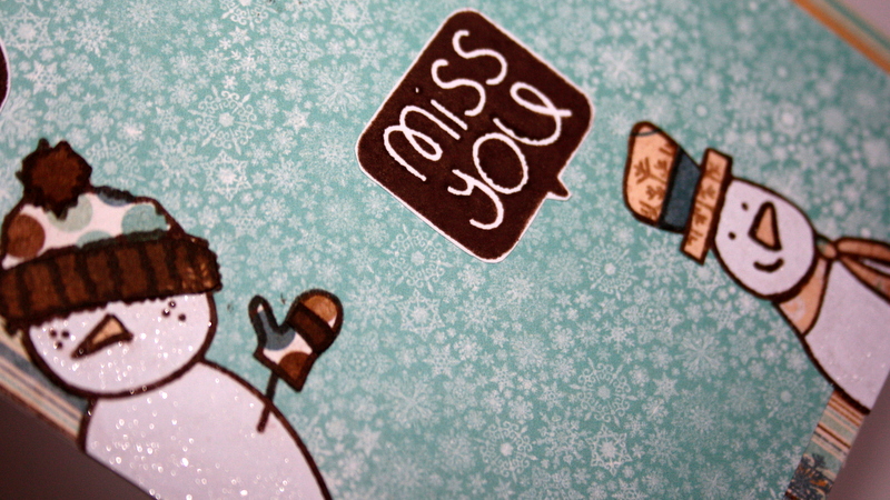 I used mainly blues and browns on this card and of course I had to add my wink of stella pen to add some sparkle on the snowmen.