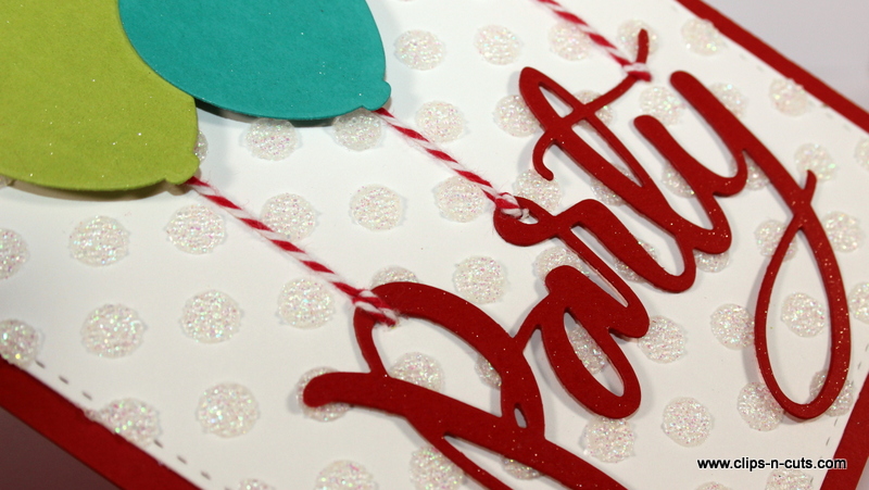 CARD 3: A fun colorful card where the balloons are tied up on the “party” word. An easy to mass produce if you are working in steps!