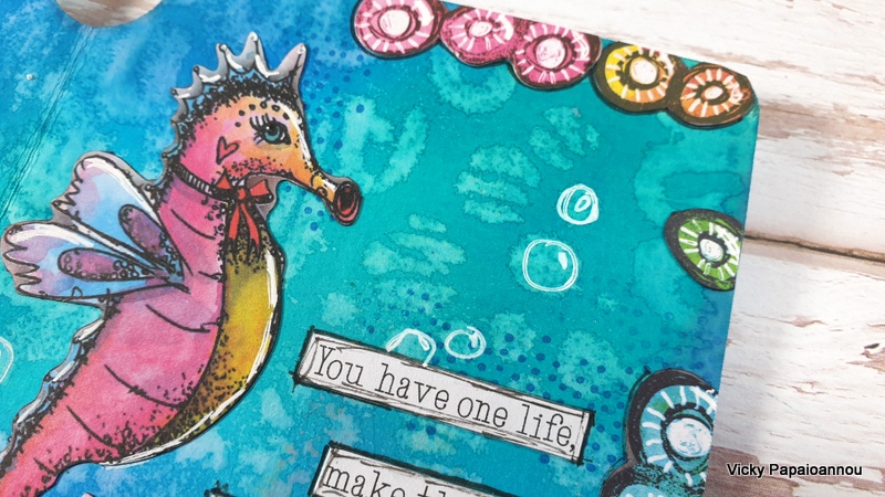Another amazing set of pages… you really inspired me here Vicky, I saw the videa what, four times? And then I got out my art supplies and started crafting. Keep them coming please, and thanks so much for sharing! The flamingo and the loveboat are my faves.