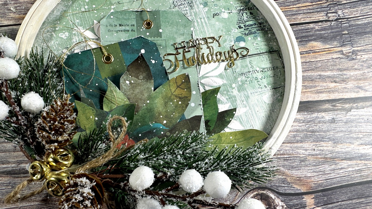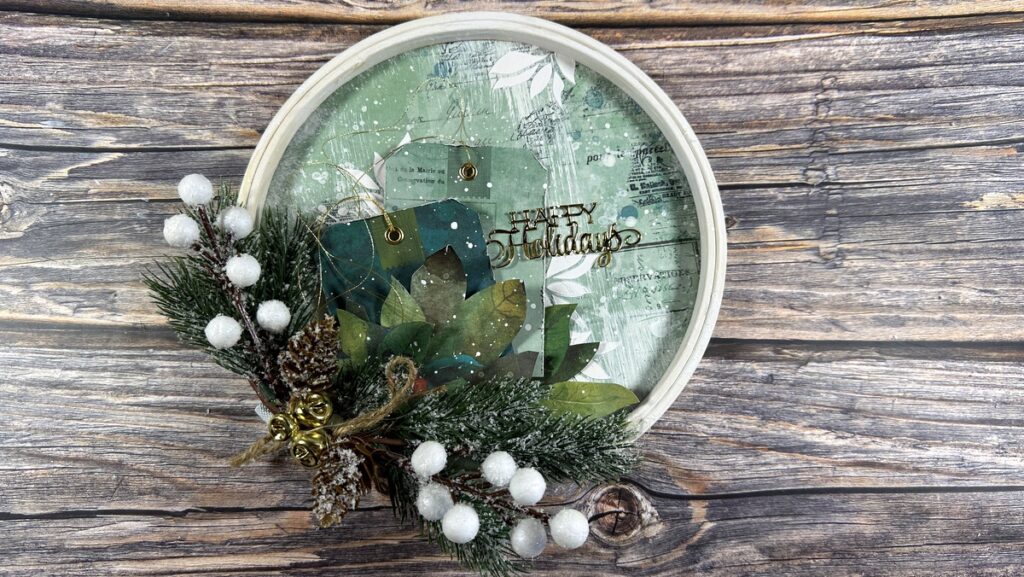 Let’s make a Christmas wreath today! A mixed media decorative project by altering an embroidery hoop!