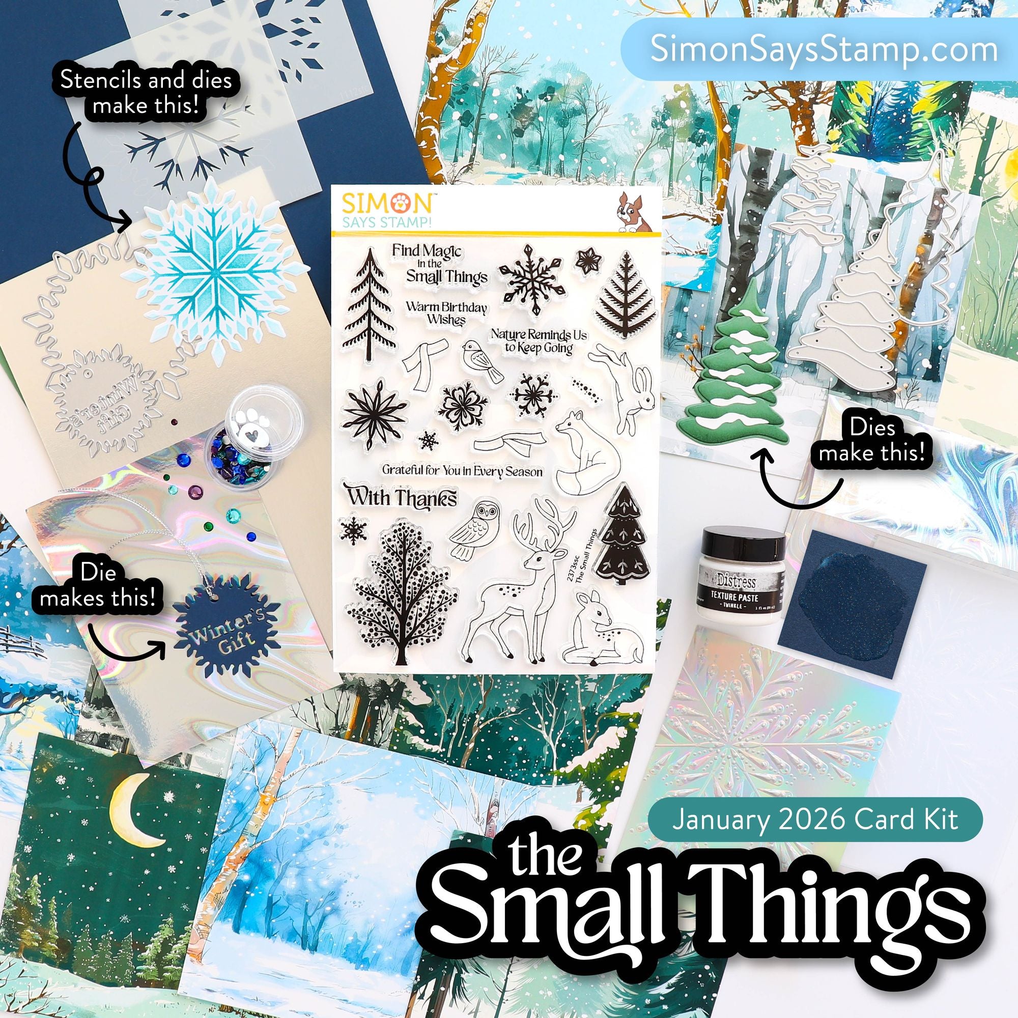 I can’t believe I am starting sharing ideas using the 2026 card kits!!! At this point I have lots counting of how many years I have been playing with the SSS card kits and I love them so much. So here is the January 2026 card kit, in a winter theme with lots of goodies included!
