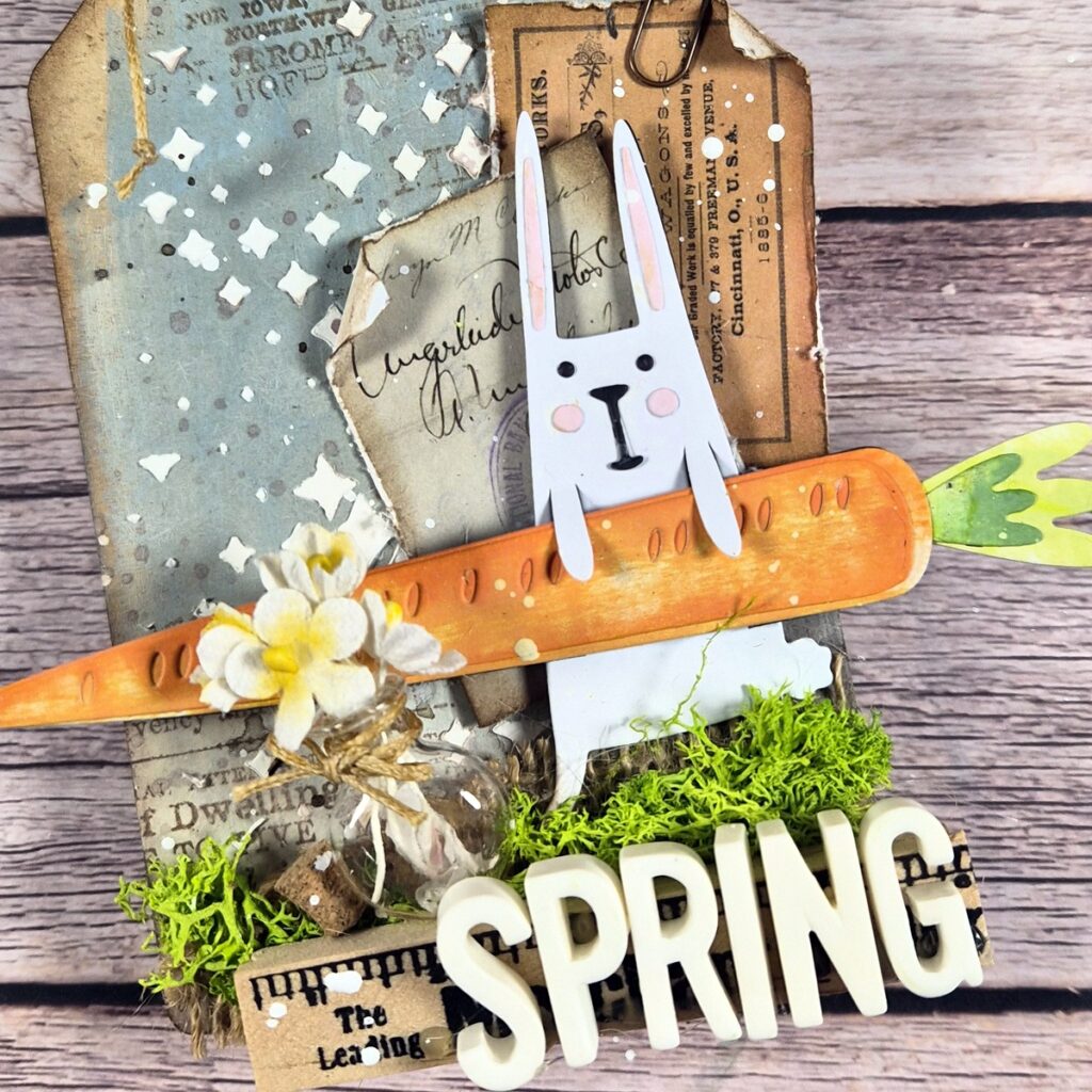 Tim Holtz Carrot Bunny – Mixed Media Tag