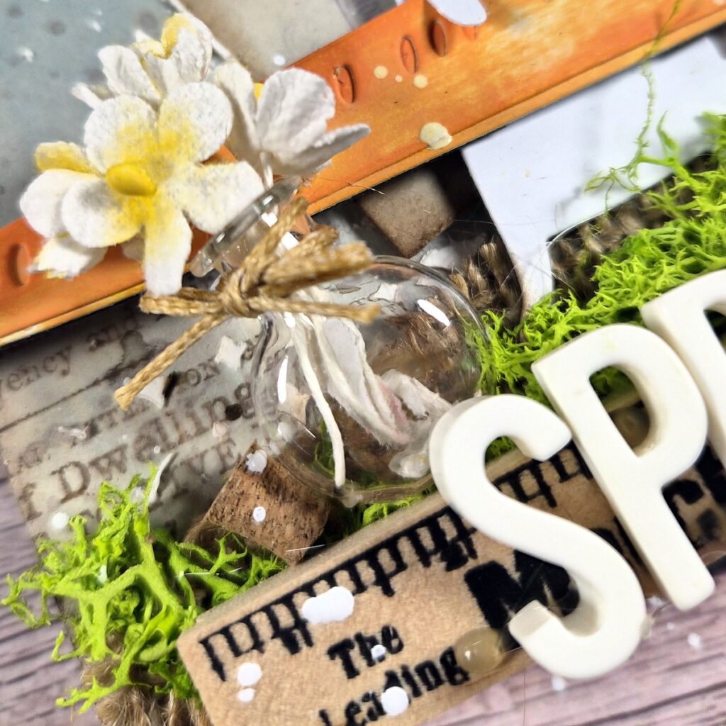 I have a Carrot Bunny mixed media tag for you today! Isn’t that bunny the most adorable one?! It can be a gift tag or just display it to decorate for spring. You can also switch the “spring” to “Easter”! I like to add magnets at the back of my tags and decorate my fridge. This way I have always the most gorgeous kitchen with all the mixed media tags I put up and I switch them depending on the season.
