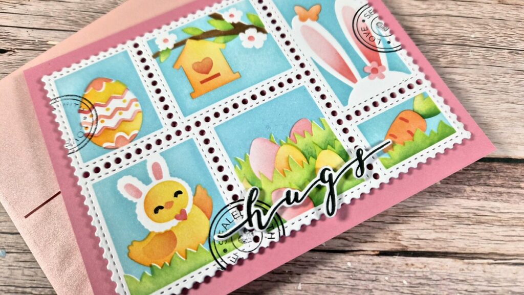 The beauty of the Postage Collage die is its incredible versatility for year-round crafting. While this project features spring designs, the grid layout acts as a permanent “blueprint” for your creativity. It eliminates the struggle of figuring out a balanced composition because the die does the work for you. Whether you are a beginner or a seasoned pro, this system allows you to build professional-looking scenes in minutes rather than hours.